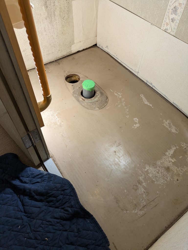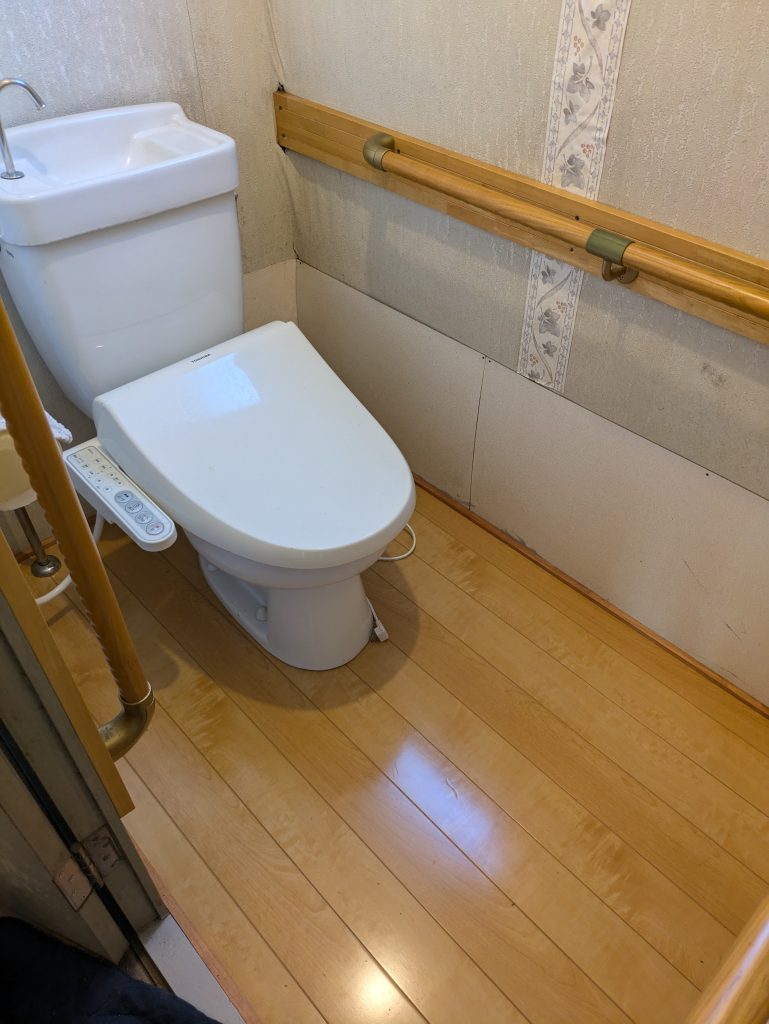 トイレの床が、ギシギシなり、床が抜けそうで、不安😨洋便器撤去して、大工さんに床下点検してもらい、補強すべきところはしてもらい、硬いフロアー材を張り。取り付け時、既存の便器意外と古くて接続部材探すの水道屋さん苦労されたのですが、何とか綺麗に仕上がりました。